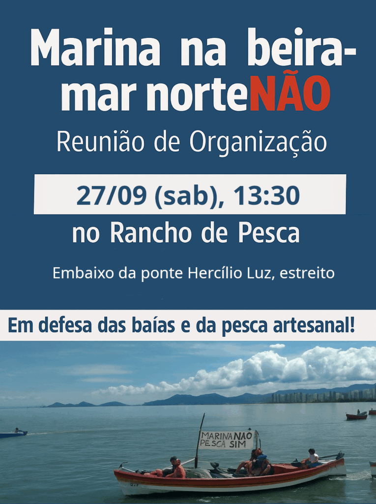 O projeto da marina na Beira-Mar Norte ameaça diretamente a pesca artesanal e a vida das nossas baías, além de prejudicar a já ruim mobilidade urbana na cidade (mais informações neste publicação).