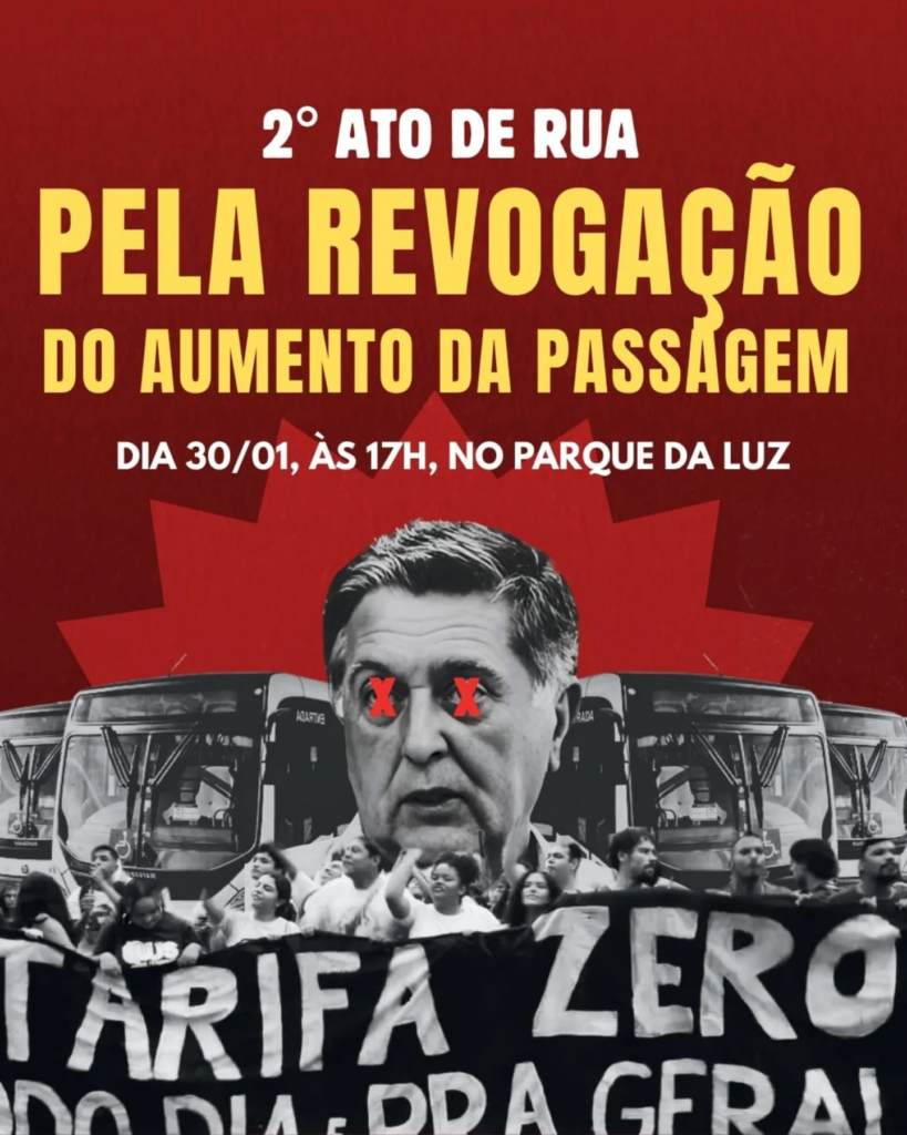 Depois de um Grande Ato no dia 19/01, quando ocupamos o TICEN mostrando nossa revolta contra o aumento na passagem e as péssimas condições do transporte coletivo da nossa cidade, convocamos todas e todos para um segundo ato de nossa jornada de mobilizações.